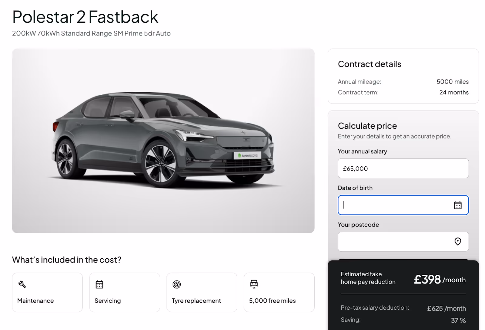 For someone earning around £65,000, choosing a Polestar 2 through salary sacrifice means sacrificing £625 of gross salary each month.