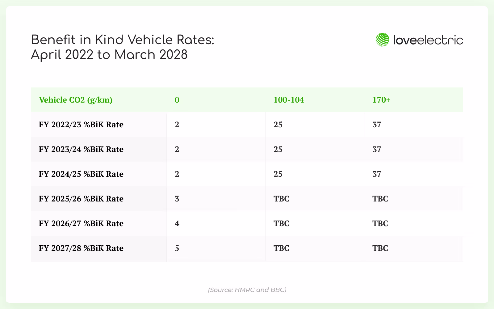- The Benefit-in-Kind (BiK) rate for the car you’re considering