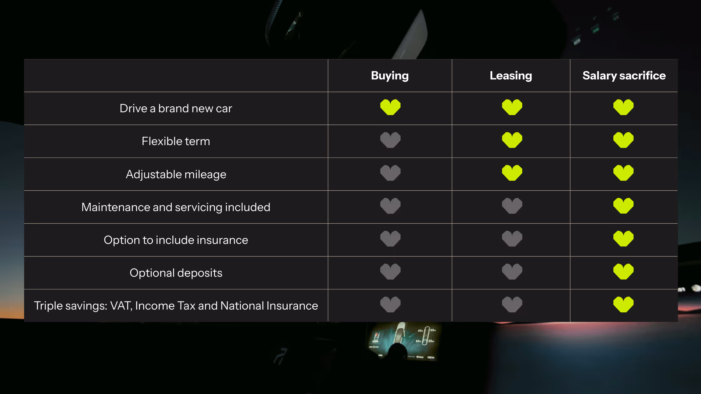 Now that we’ve seen how salary sacrifice impacts different earners, let’s put it into context. How do these savings stack up against a traditional lease?